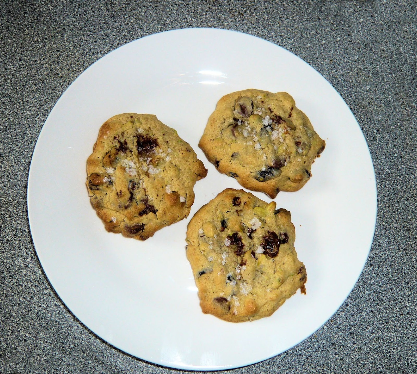 | Choc chip, pistachio & cranberry cookies( they really taste divine, see sea salt on top!). Wrapping them later. |